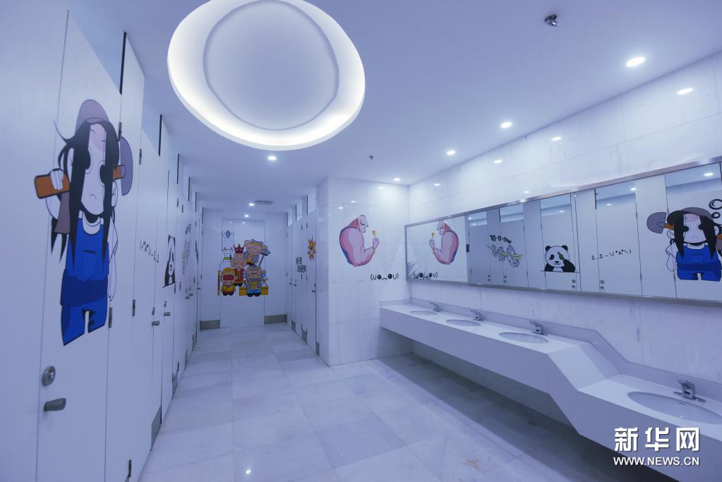 6月22日,中国动漫博物馆内具有动漫特色的卫生间。新华社发(龙巍摄)