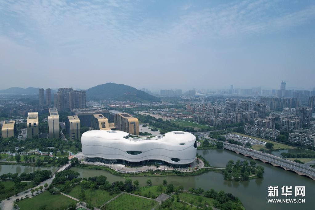 6月22日拍摄的中国动漫博物馆(无人机照片)。中国动漫博物馆位于杭州市白马湖畔,总建筑面积3万余平方米,集展陈、收藏、教育、体验、学术等多功能于一体。馆内陈设以“动漫让生活更美好”为主题,拥有“动漫你的遐想”“动漫你的回忆”“动漫你的今天”“动漫你的未来”四大展区,将于近日对外开放。新华社发(龙巍摄)