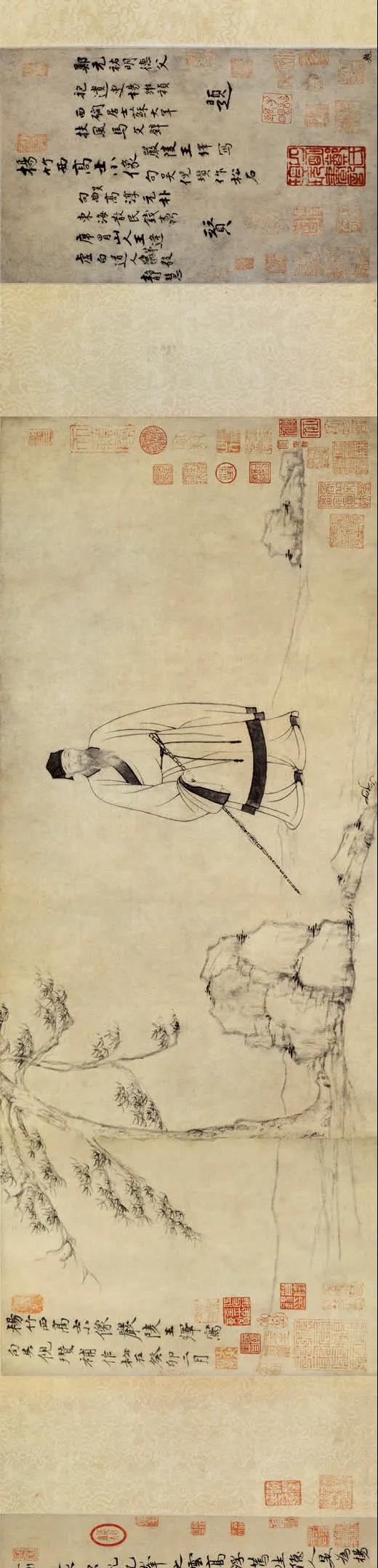 [15]据说此画一九七六年出现,该年江苏高邮一农妇翻修屋舍时,在山墙隔板间发现此图,后以十数元卖给扬州文物商店,今归藏于云林家乡无锡市博物馆。