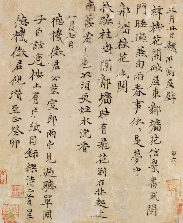 元倪瓒楷书题所寓屋壁诗二首呈德机征君纵27.2cm横25.5cm吉林省博物院藏