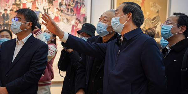 来宾共同参观美术作品
