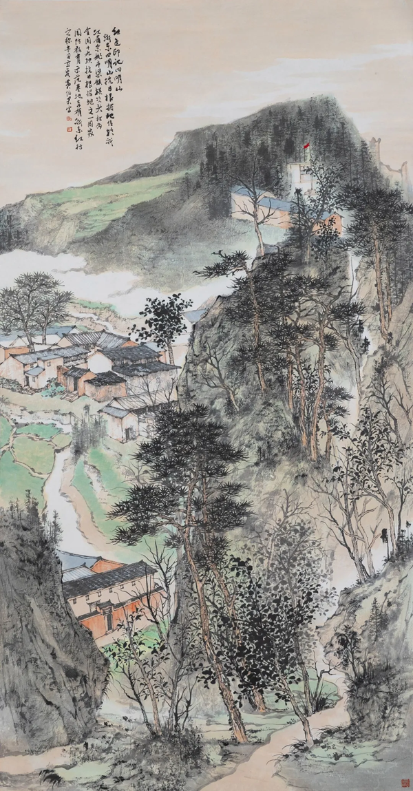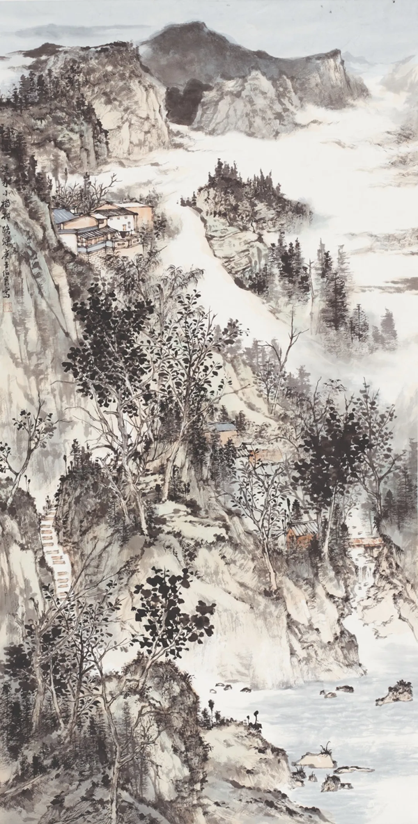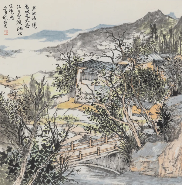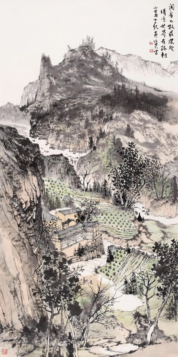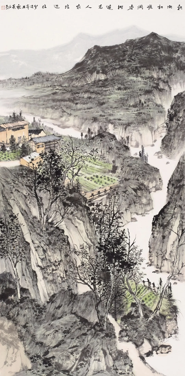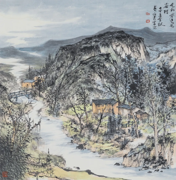 黄伯君《溪水小桥村路深》136cm×68㎝