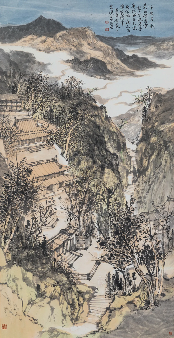 黄伯君《千年古刹灵山保国寺》136cm×68cm