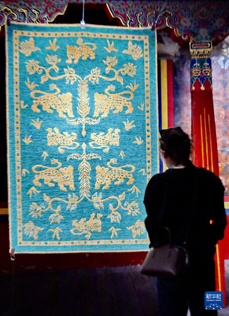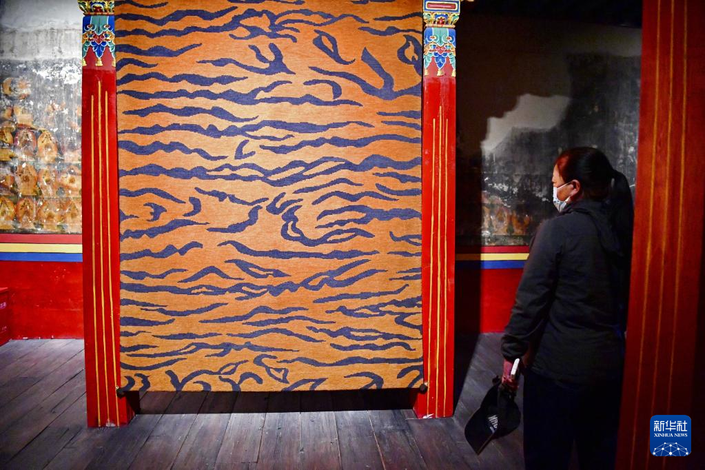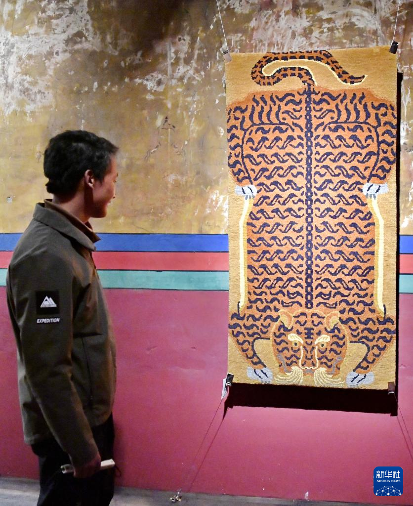 当日,名为“智慧和无畏”的“虎毯”展览在拉萨吉本岗艺术中心展出。西藏的非遗工作者根据古代藏毯藏品重新挖掘,整理了以“虎”为主题的图案,设计制作了本次展览作品。本次展览展出20余件各具特色的藏毯艺术作品,展览将持续到5月初。