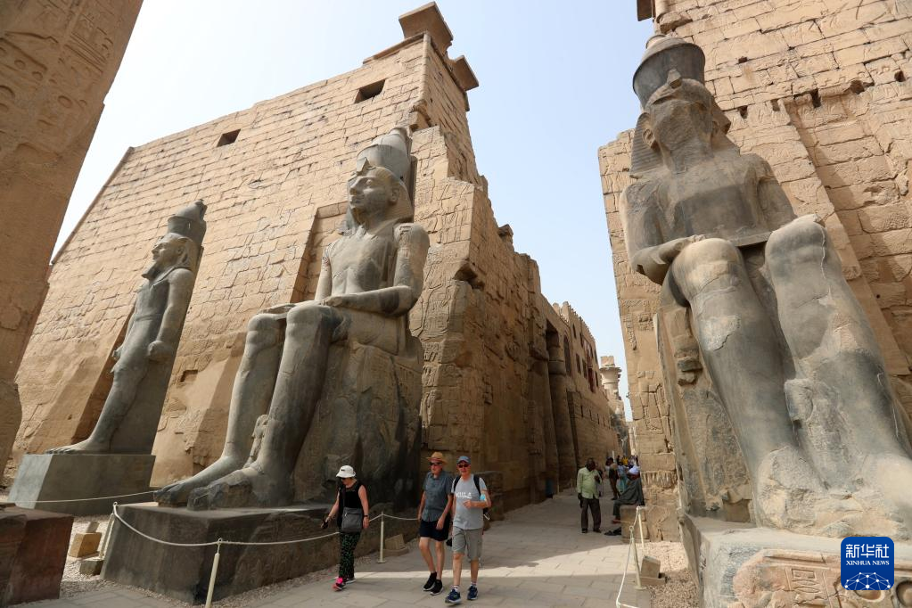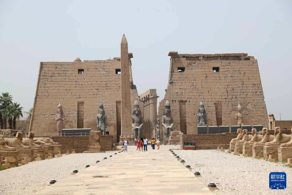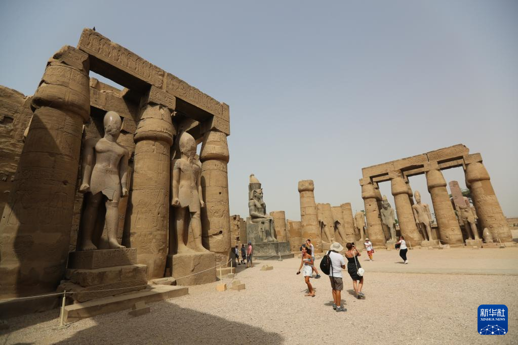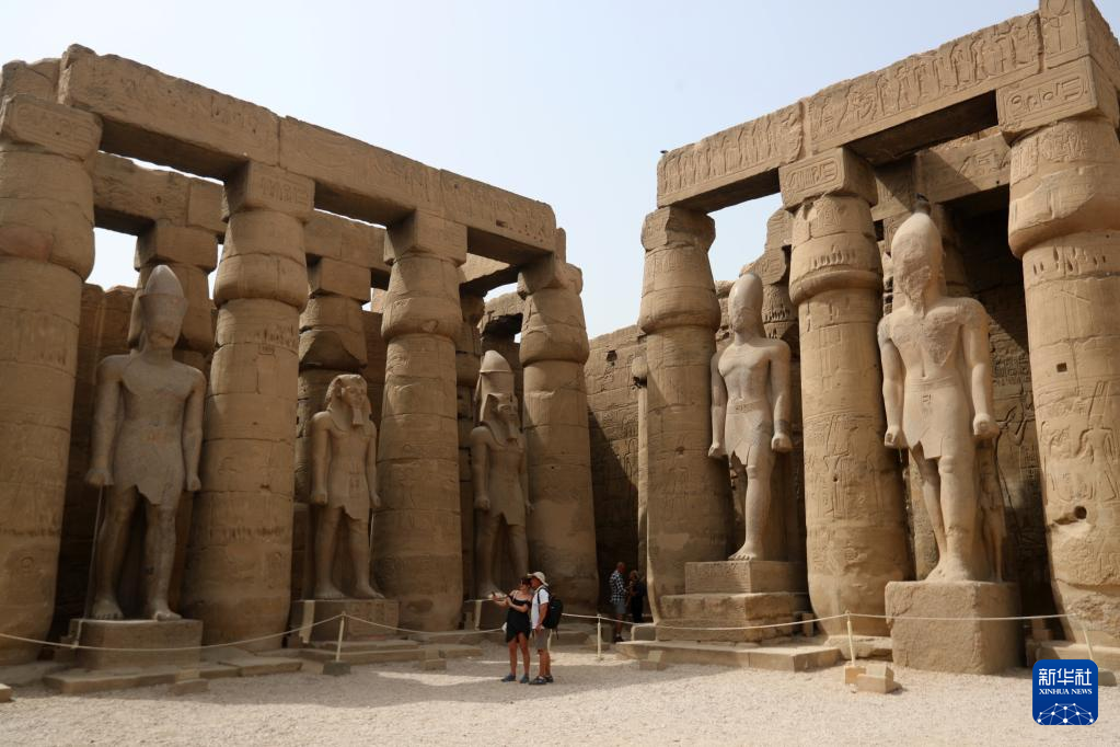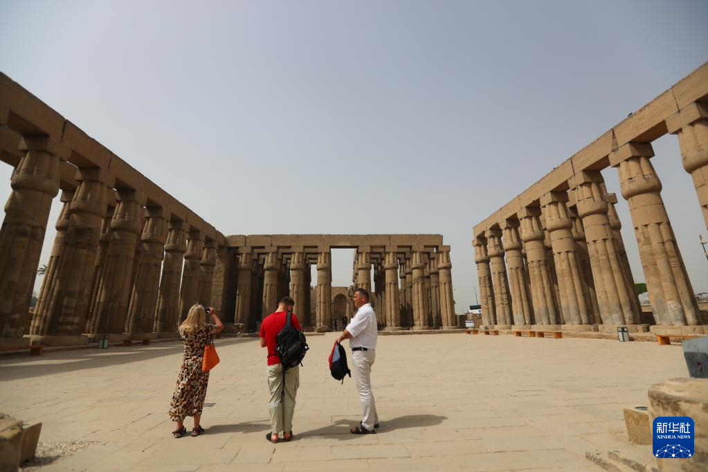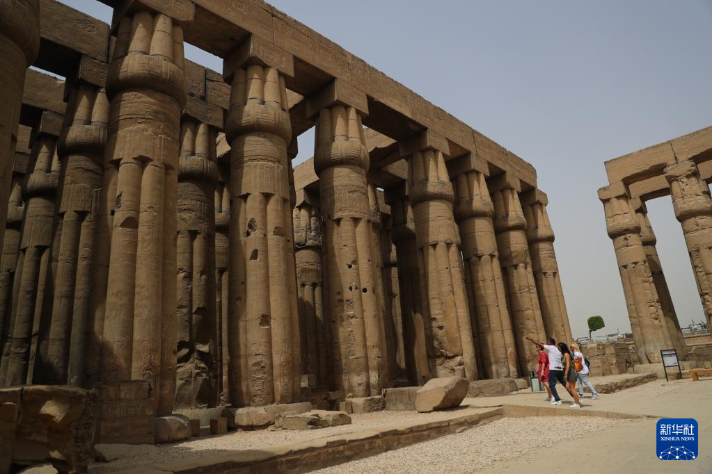 4月26日,工作人员在埃及卢克索神庙内巡看。