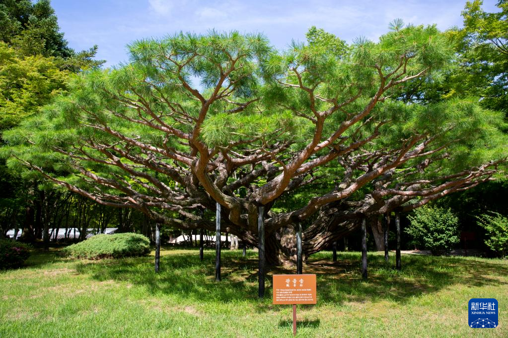 这是7月3日在韩国庆州市世界文化遗产佛国寺拍摄的“观音松”。