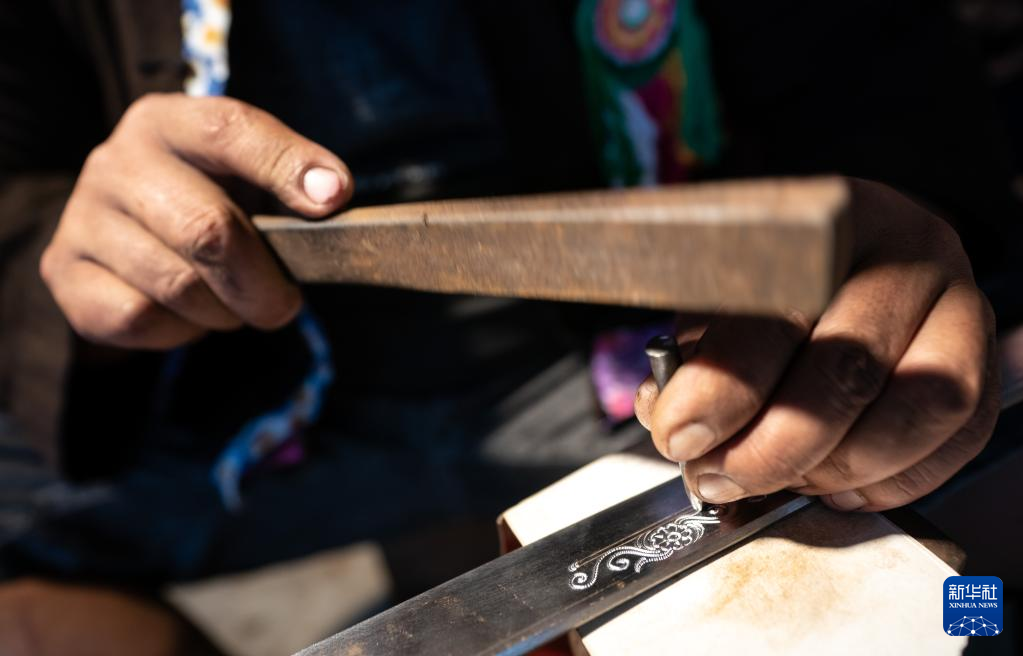 制刀过程中,项老赛坚持采用阿昌族独特的锻打、淬火、磨刀等工艺纯手工制作,并在此基础初上不断改进刀的外观、质地,为老手艺赋予新内涵。由他制作的工艺品刀具深受顾客青睐。
