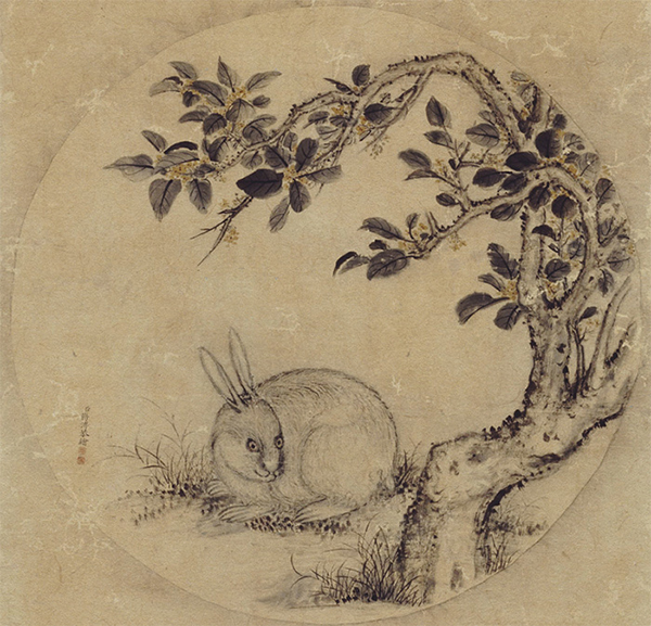清·蒋溥 《月中桂兔图》(局部)纸本水墨 北京故宫博物院藏