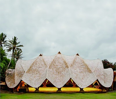 印度尼西亚巴厘岛的绿色学校(Green school),是以竹子为方法探索构建可持续文化生态的另一种尝试。在那里,竹子成为打造乡村美育社区的核心驱动力和策略。竹子成为整个校舍的生态建筑基因,从教室、礼堂到桌椅、地板、餐盘全都由竹子制成。受竹子的绿色、低碳、可持续性启发,学校增加了稻田、鱼塘、可堆肥的厕所、太阳能和水力发电设备等可持续的能源系统,让整个校园处处彰显“可持续”的理念。