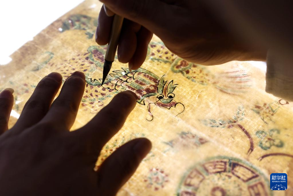 2月10日,在童寿记木版年画工作室,童敏在研究年画创作工艺。