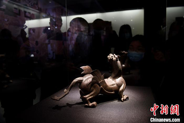 图为展陈文物吸引民众拍照。 周毅 摄