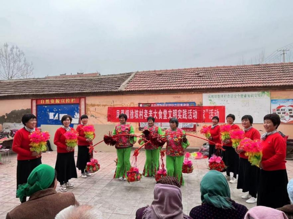 徐垓村全村1500多人中,70岁以上的老人有将近150人,春日微风和煦,老人们聚在一起相互问候,拉拉家常,好不热闹。一大早,徐垓村的志愿者们就开始忙活起来,洗菜、烧水、炒菜,大家分工明确,干劲十足,纷纷用自己拿手的方式为老人做出一顿暖心饭。村委会还准备了广场舞、秧歌舞演出,极大地丰富了老人们的精神世界,整场活动其乐融融、欢乐无限。