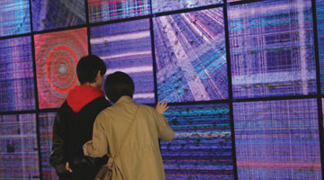 4月23日,一名观众在展览现场上拍摄展出的摄影作品。