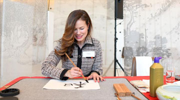 5月9日,参观者在展览现场观赏参展作品《ON》。