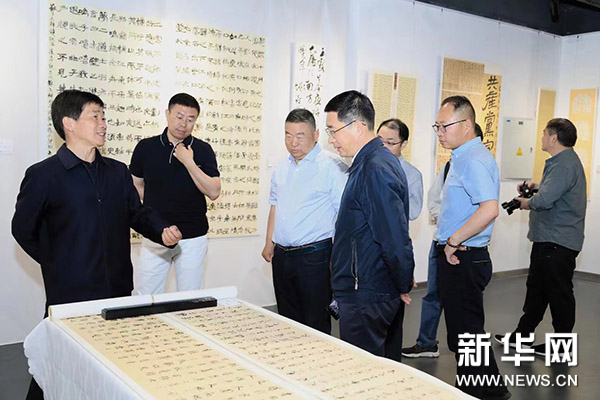 杜飞进介绍,北京中轴线作为大国首都的古老而又极富时代活力的城市轴线,其最大魅力就在于所营造的壮美空间秩序,展示了中华优秀传统文化的博大精深。而此次展出的书法作品展示的正是北大校友们用自己的笔触所营造的壮美汉文字秩序,其内核也在于中华优秀传统文化的博大精深,以此来助力中轴线申遗保护可谓有异曲同工之妙,二者统一并将有助于中华优秀传统文化的进一步传承与弘扬。