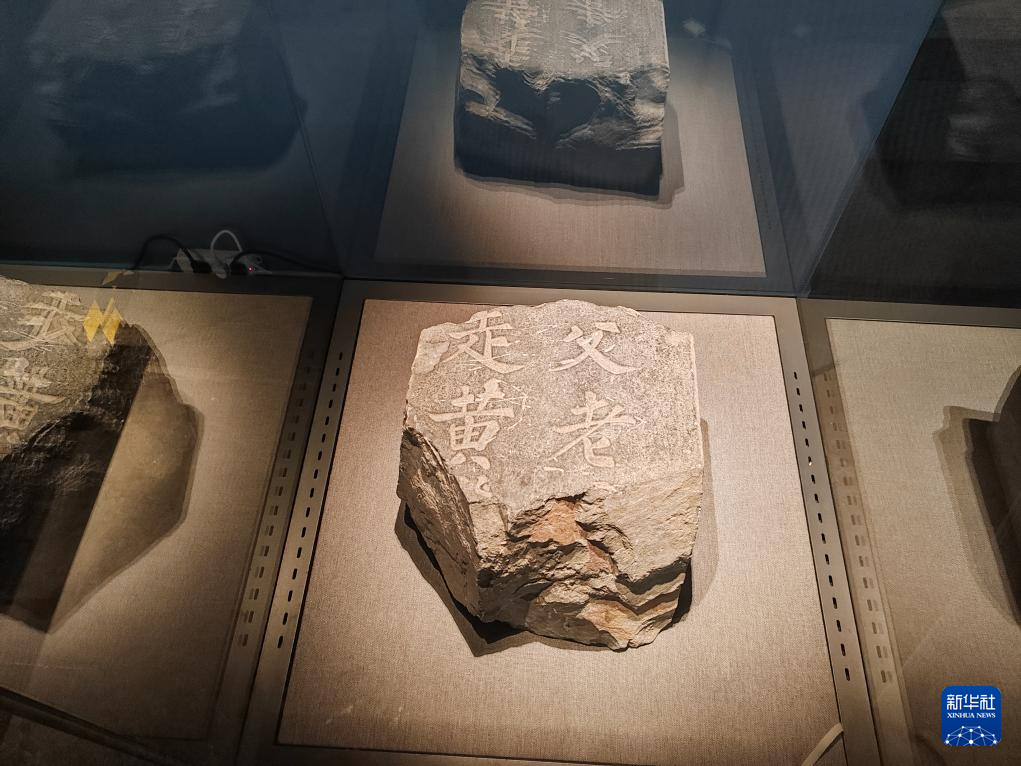 图为此次展出的苏轼《表忠观碑》南宋重刻碑残石。新华社记者冯源 摄