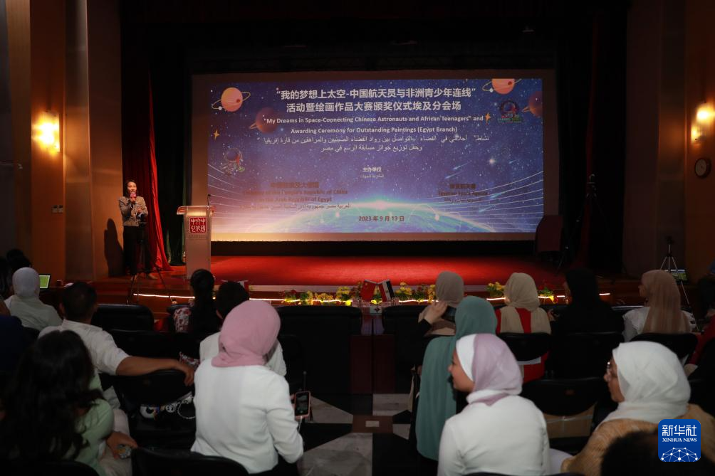 9月13日,在埃及开罗,人们参加“我的梦想上太空-中国航天员与非洲青少年连线”活动暨绘画作品大赛颁奖仪式。