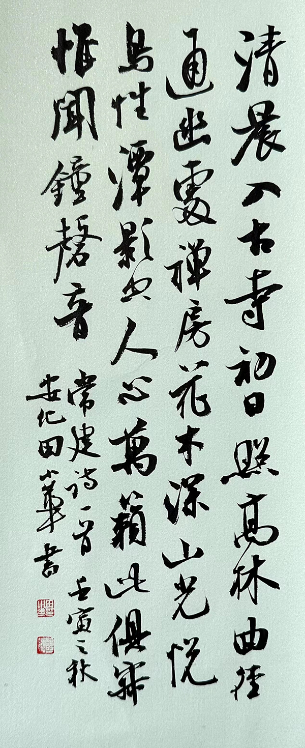 田小华是中国人民大学盛景华书法工作室的助教,之所以被本工作室聘为助教,最重要的一点,就是他学习传统经典的态度和作风令人肃然起敬。他将临习古人经典作为日课,几十年坚持不懈。他来自贫困山区,那地方山高水远偏于一隅,交通不便,信息闭塞。为了让他有更大的发展空间,我曾经不止一次地劝他到城市来工作,并努力为他打通关系,铺好道路,可是他就是不肯离开他的家乡,不肯离开他那个相对安静闲适的学习环境。他说他喜欢安静,不喜欢应酬,不愿意被琐事打扰。对于他对待书法那种认真,那种视之为生命的精神,我还能说什么呢!