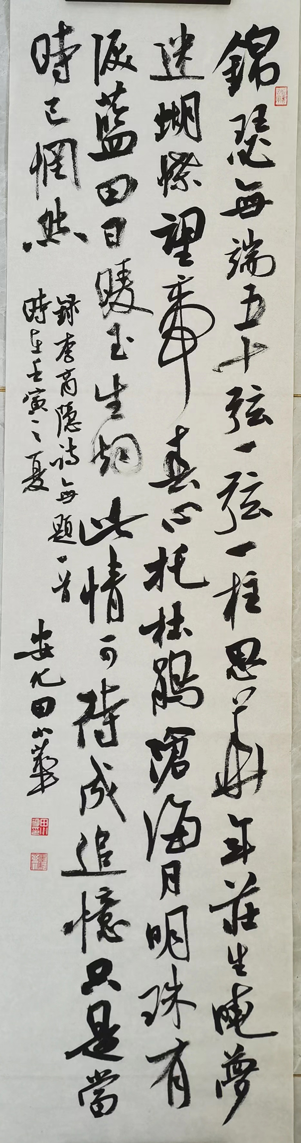 真是功夫不负有心人。这些年来,小华临帖不辍,所有米芾存世的法书墨迹他都临习得滚瓜烂熟,下笔即有,他背临的“蜀素帖、苕溪诗”几可乱真。说他是当下国内学“米”最为出色书法家之一并不为过。除此之外,小华还遍临了由晋至明清帖学一脉的大多数碑帖经典,尤其是二王法帖,他一临就是十通、百通的。他做过中国书法网创作版版主,以其扎实的临帖功夫赢得粉丝无数。他还客串过《书法报》临帖栏目的嘉宾,以其丰富的学养,诚恳的热情,精准的评点深得读者喜爱。