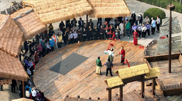 10月24日,艺人在甘肃省定西市临洮县洮砚艺术馆介绍一款洮砚的创作构想。