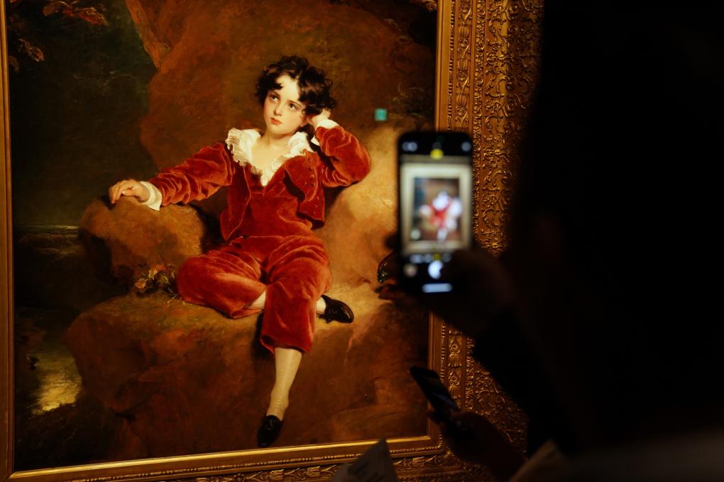 11月21日,参观者拍摄香港故宫文化博物馆展出的《红衣男孩》。新华社记者 王申 摄