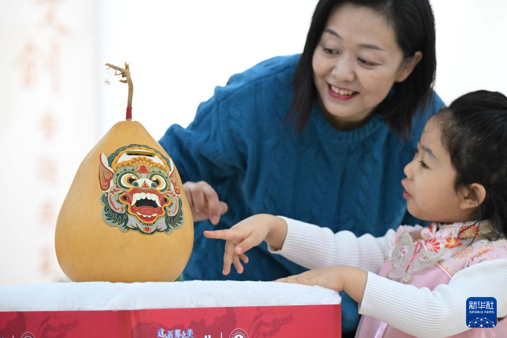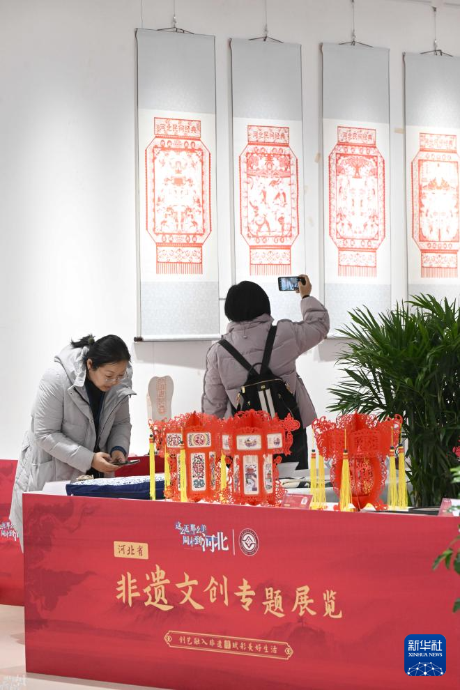 12月26日,市民在河北省群众艺术馆欣赏非遗文创作品。