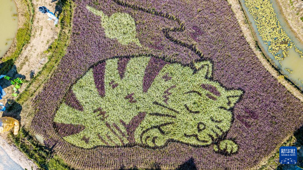 近日,泰国清莱艺术家在当地稻田中创作了三幅以猫为图案的巨型稻田画,吸引游人前来观看。