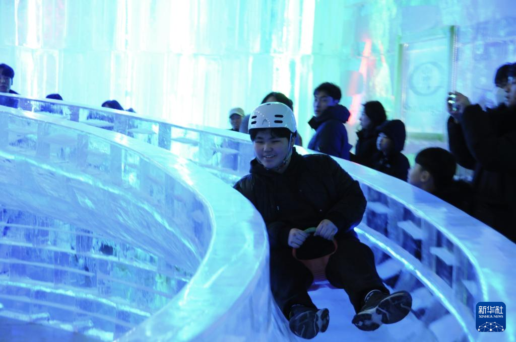 近日,韩国江原道华川郡举行山鳟鱼节,人们可在现场体验冰钓、滑冰、冰滑梯等丰富多彩的冰雪活动。主办方还邀请了来自哈尔滨的工匠为冰灯广场创作冰雕艺术品,吸引众多游客慕名而来。