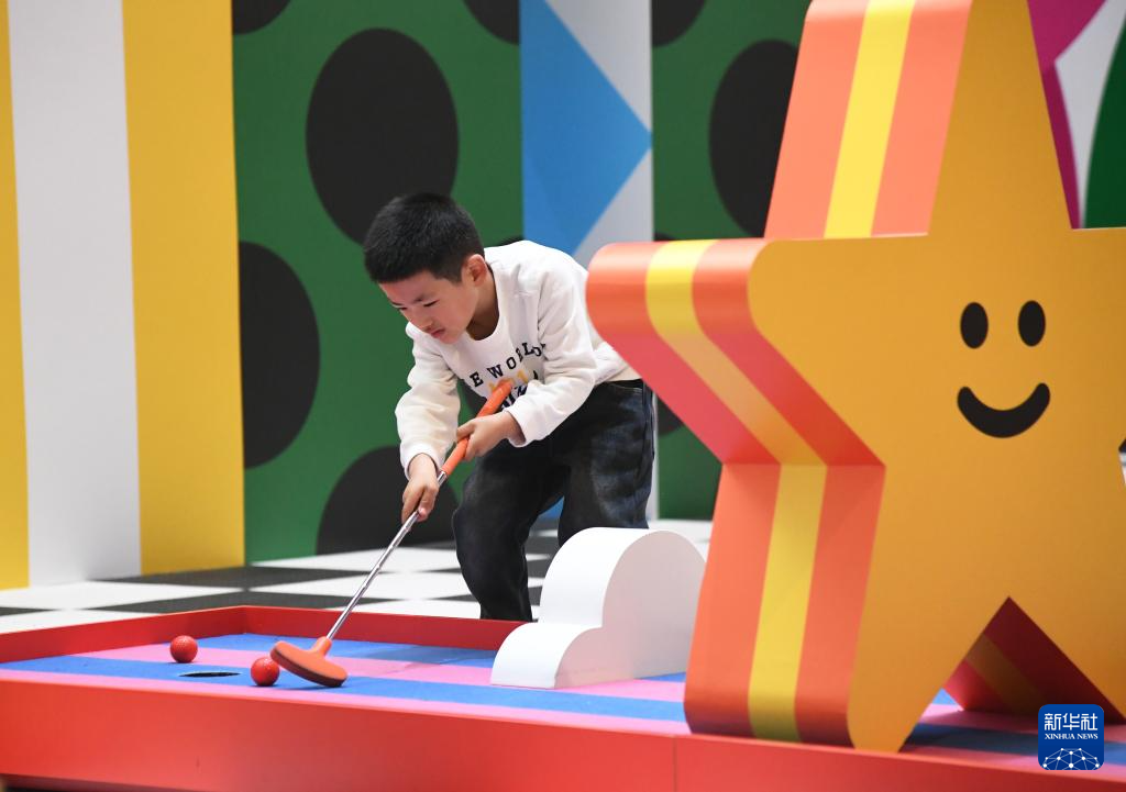 3月15日,一名小朋友在《INSIDE OUT请勿见外》艺术展上与艺术作品互动。