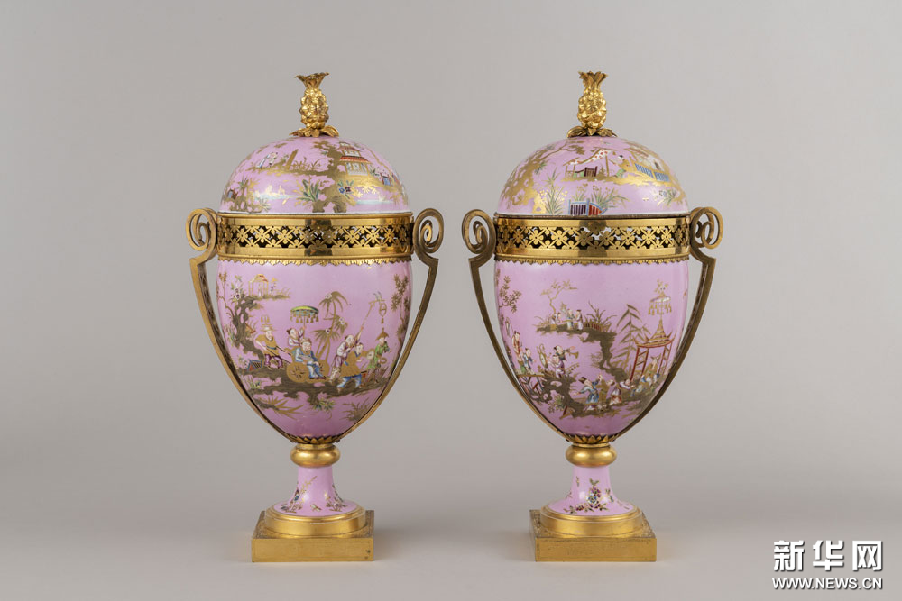 淡紫地彩绘描金风景人物图蛋形瓶一对 凡尔赛宫与特里亚农宫国立博物馆藏