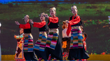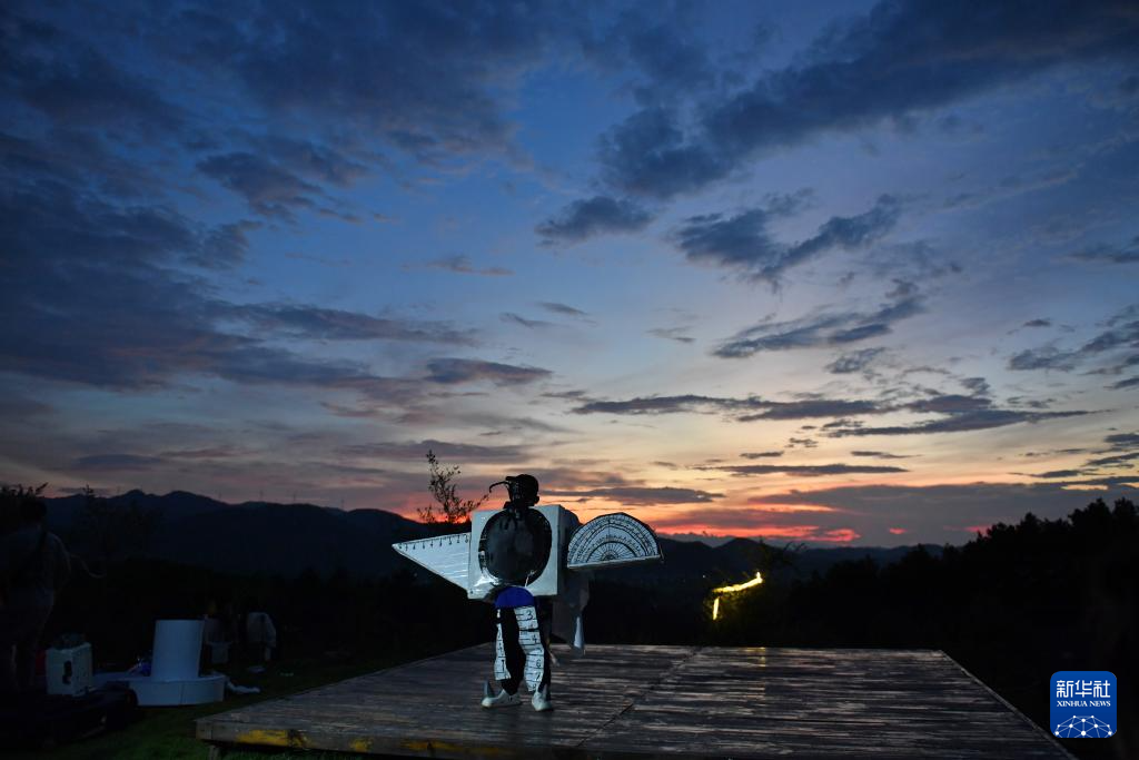 8月25日,孩子们在大元社乡村青少年艺术节上表演(无人机照片)。