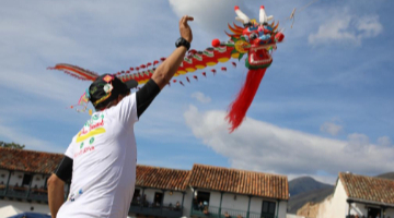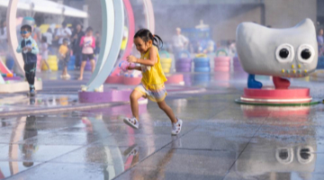 8月25日,小朋友展示为大元社乡村青少年艺术节戏剧表演设计的“数学老师”造型。