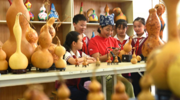 当日,北京大钟寺古钟博物馆举办中秋主题活动,邀请游客做月饼,染漆扇,赏古钟。