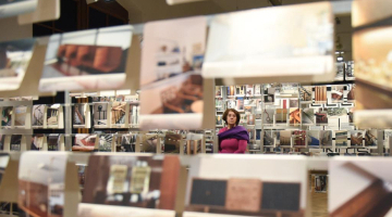 王彪(左)和徒弟陈静在挑选用于制作影人的牛皮(2月19日摄)。