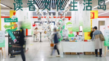 4月16日,游客在山西大同云冈石窟文创空间选购文创产品。