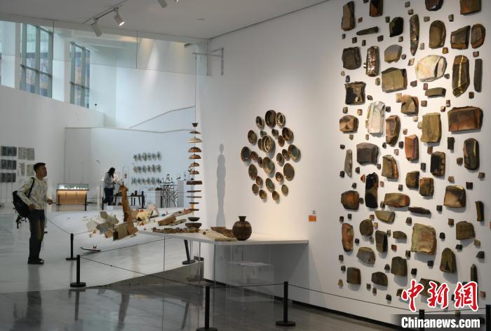 图为精美艺术作品吸引参观者驻足欣赏。中新社记者 周毅 摄