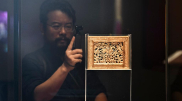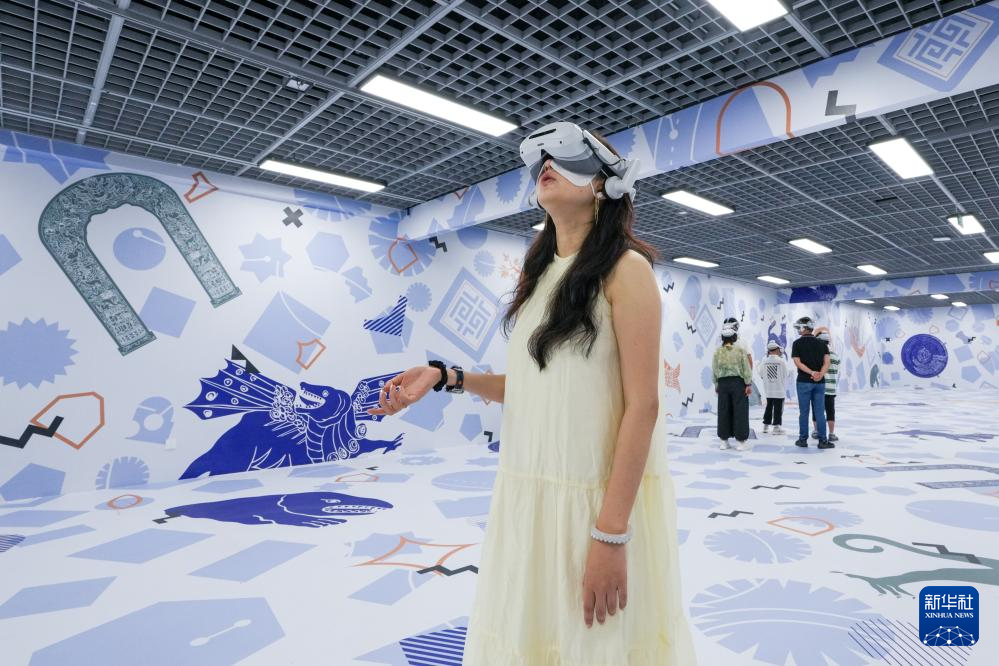7月10日,观众在南京博物院观看展览的球形视频介绍。