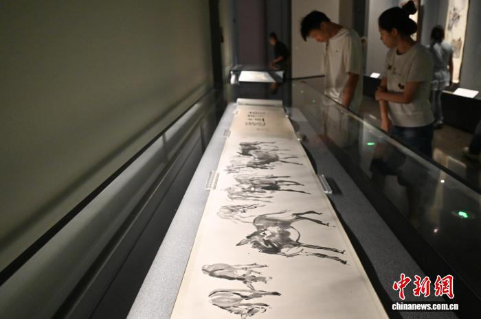 图为黄胄的《毛驴图》吸引参观者。中新社记者 陈楚红 摄