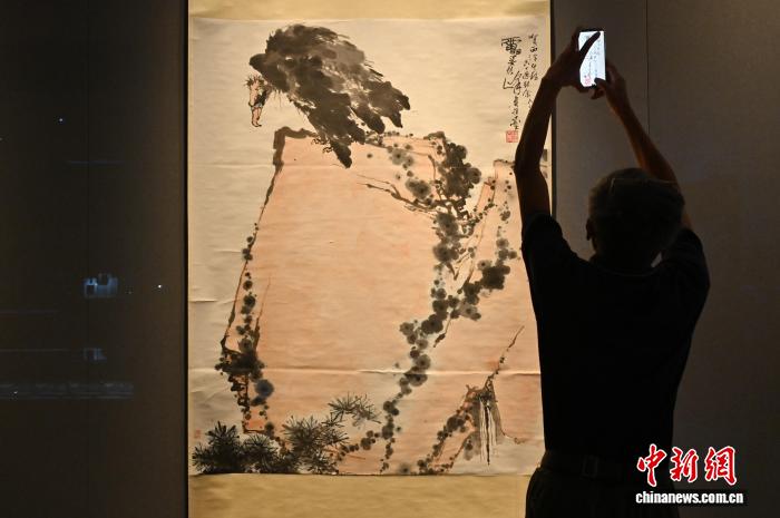 图为潘天寿的《秃鹫图》吸引参观者拍照。中新社记者 陈楚红 摄