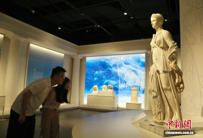 7月27日,参观者观看展出的阿尔忒弥斯雕像。正在四川省广汉市三星堆博物馆展出的“古希腊的旅程——希腊考古出土文物精品展”吸引了不少参观者。本次展览汇集了来自希腊31家博物馆和考古文博机构的172件/组珍贵文物(含9件复制品),全面展现了古希腊文明演进中的辉煌成就。中新社记者 王磊 摄