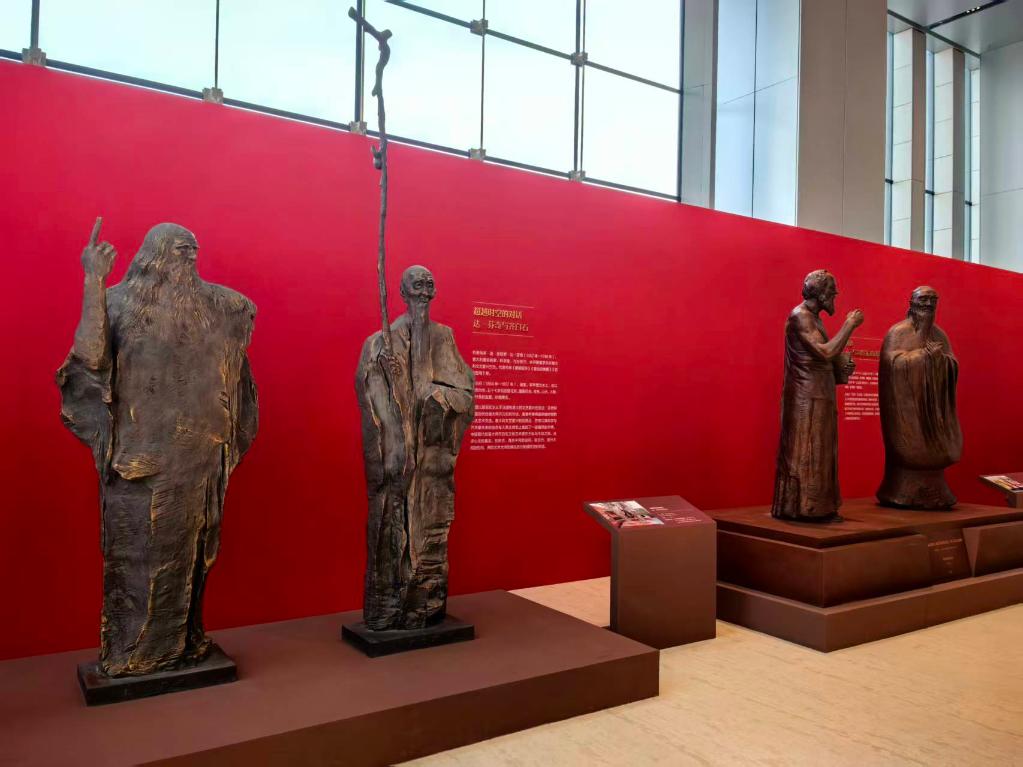 组雕《神遇——孔子与苏格拉底的对话》呈现了这样的景象:两位分别来自东西方的哲学巨人并肩站立,仿佛穿越地理与时间界限,产生思想碰撞与交汇。
