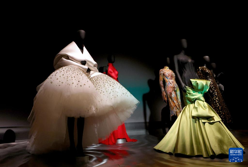 这是3月30日在英国伦敦维多利亚与阿尔伯特博物馆拍摄的“夏帕瑞丽:当时尚成为艺术”展览现场。