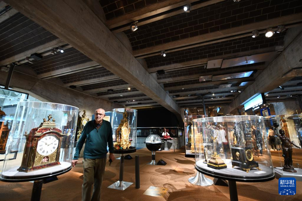 4月12日,一名男子参观瑞士拉绍德封的国际钟表博物馆。