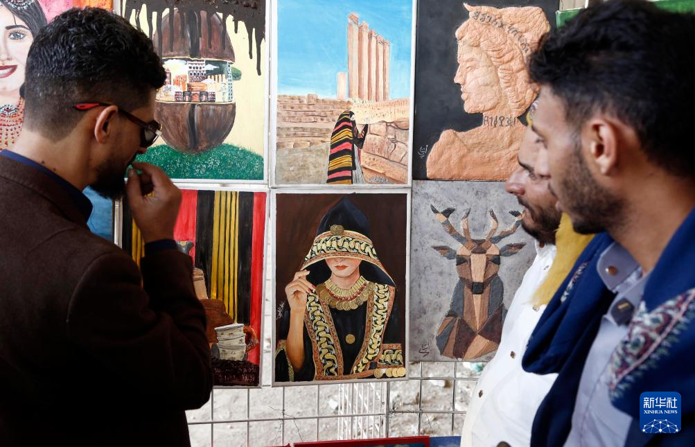 4月14日,也门首都萨那举办艺术展,展出了约150名当地艺术家的数百幅关于该国文化遗产的画作。