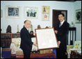 1988年在亚洲最佳运动员评选揭晓授奖大会上为棋圣聂卫平颁奖。