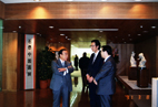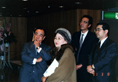 1991年,应邀赴日东京高岛屋举办个人画展。日本公明党委员长竹入义胜和夫人观赏画展。