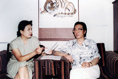 1991年在台北举办个人画展后,又应邀到台中举行巡回展出。图为在新闻发布会上回答记者提问。