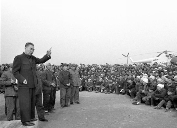 图为周恩来赴河北省邢台地震灾区慰问群众并指导救灾工作。