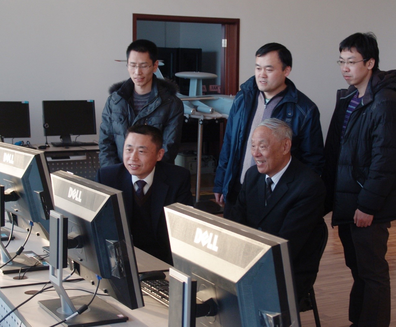 陆军院士(前排左)、“中国预警机之父”王小谟院士(前排右)