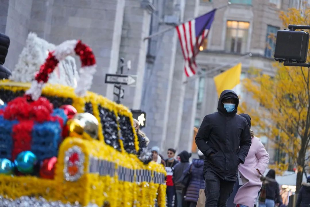 ▲11月23日,戴口罩的行人从美国纽约街头的节日装饰旁走过。新华社记者 王迎 摄